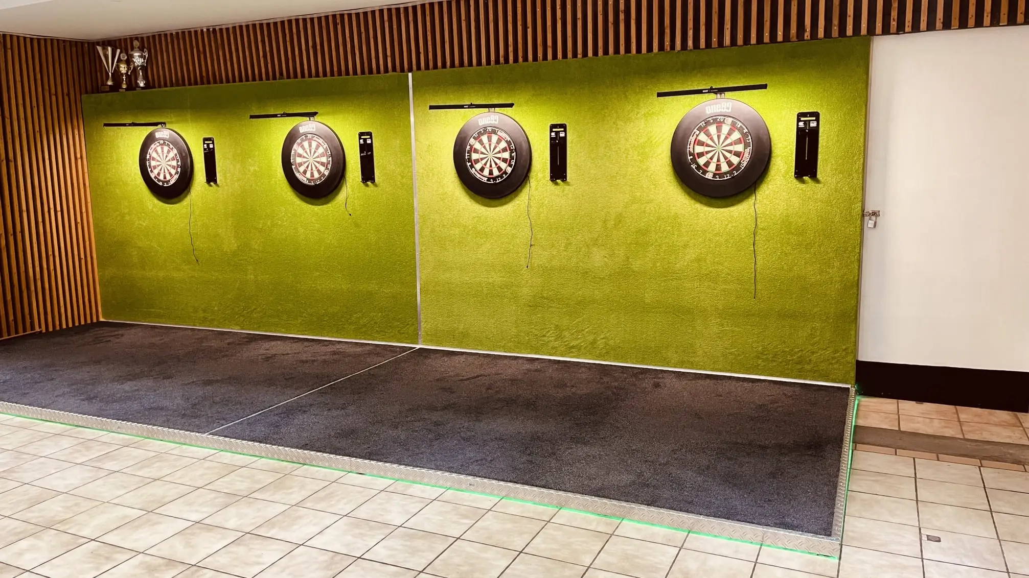 In unserem Saalbereich des Vereinsheims befindet sich unser Dartbereich. Hier können sämtliche Trainings sowie Dartspiele auf allen Ebenen veranstaltet werden. Für Mitglieder und Gäste stehen ein Dartautomat und 4 Steel-Dartscheiben bereit. Die Anlage ist für den Ligabetrieb im NWDV e.V. geeignet.